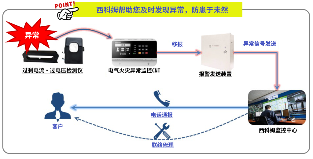 使用電氣火災報警系統(tǒng),不在期間異常發(fā)生時,西科姆可及時聯(lián)系您,減少損失。